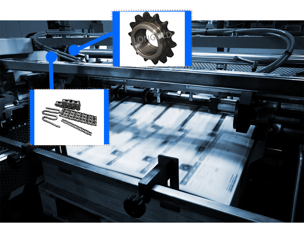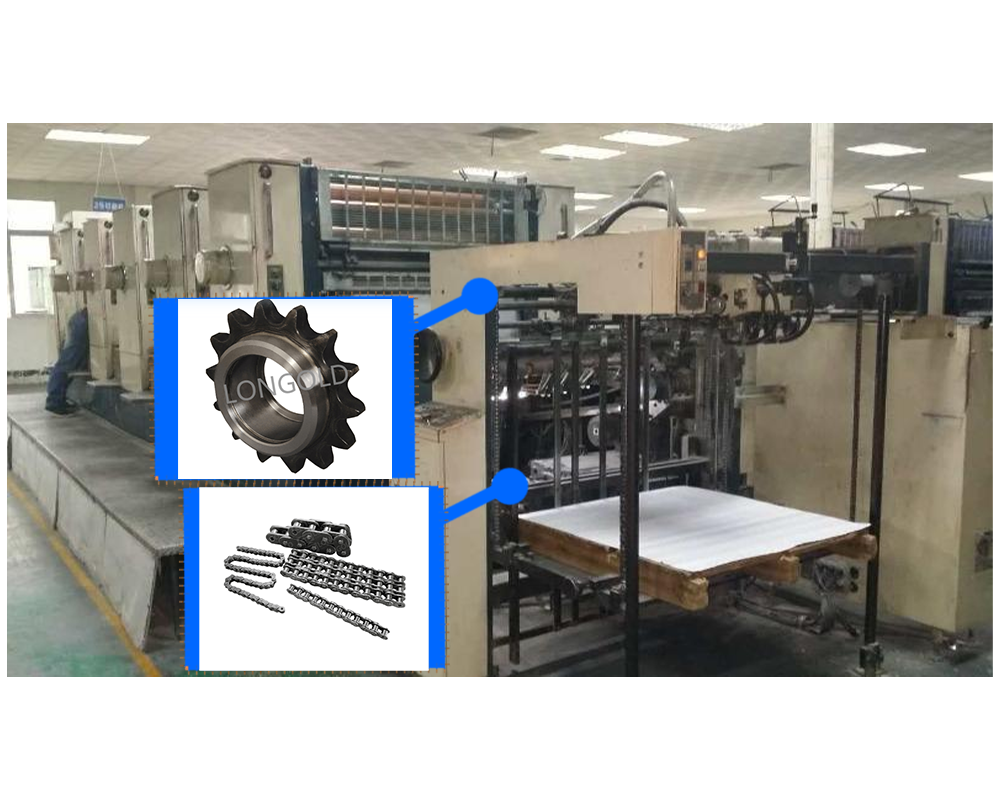 印刷設(shè)備通常需要較大的動(dòng)力來(lái)驅(qū)動(dòng)各個(gè)部件的運(yùn)動(dòng),隆德的傳動(dòng)鏈和鏈輪可以將動(dòng)力從電機(jī)等動(dòng)力源傳遞到印刷設(shè)備的各個(gè)部位,確保設(shè)備的正常運(yùn)行。圖中為滾子鏈和鏈輪組合來(lái)為印刷設(shè)備傳動(dòng)動(dòng)力。