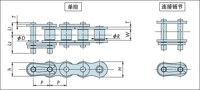 注) 1.本產(chǎn)品屬于超微型鏈條,在操作上較一般尺寸產(chǎn)品有很大的區(qū)別。選型和操作等相關(guān)事項(xiàng)請(qǐng)聯(lián)系客戶進(jìn)行咨詢。 2.銘牌上沒(méi)有鋼印。 3.銷不用鉚釘緊固。 4.我們不建議使用連接鏈節(jié),因其不易安裝。 5.無(wú)過(guò)渡鏈節(jié)。 6.只能以一個(gè)單元的鏈節(jié)的倍數(shù)訂貨。 7.鏈節(jié)為偶數(shù)時(shí),使用外鏈節(jié)進(jìn)行兩端的連接。 (不使用連接鏈節(jié)。) 但當(dāng)鏈節(jié)不足80節(jié)時(shí),需使用連接鏈節(jié)連接兩端。就鏈條兩端的連接方式,如有疑問(wèn)請(qǐng)聯(lián)系客服進(jìn)行咨詢。鏈節(jié)為奇數(shù)時(shí),使用內(nèi)鏈節(jié)進(jìn)行兩端的連接。 上述以外的構(gòu)成,請(qǐng)聯(lián)系客服進(jìn)行咨詢。 |