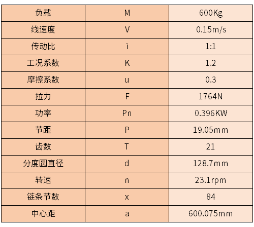 已知鏈條要用以驅動水平線運輸,其負載約為600kg,驅動水平線的運輸速度為0.15m/s,鏈輪的傳動比為1:1,那么該如何選用合適的鏈輪和鏈條呢?