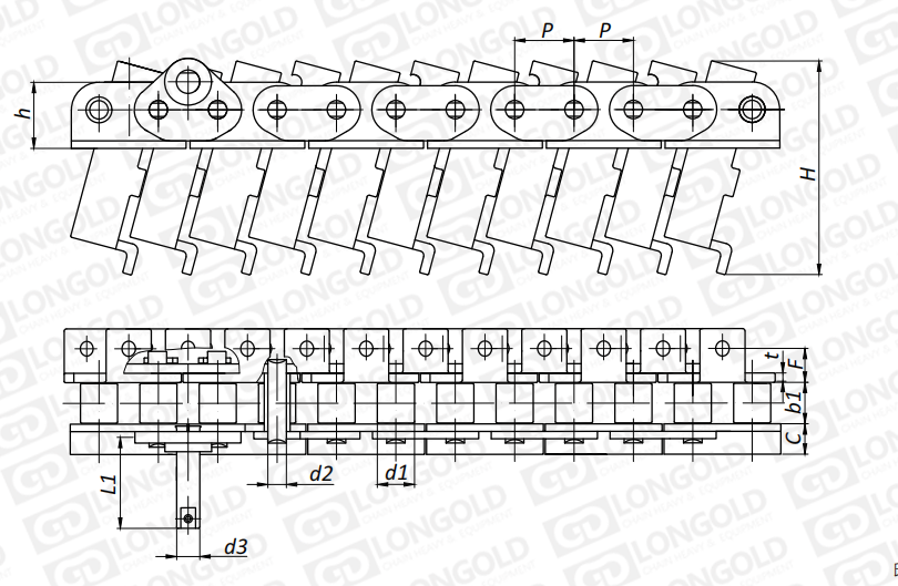 此類型鏈條是在標(biāo)準(zhǔn)短節(jié)距精密滾子鏈作為基鏈的基礎(chǔ)上加裝特殊附件的鏈條。