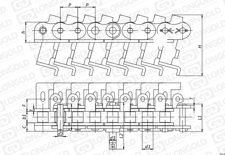 附件是為了將夾具安裝在鏈條上的零部件。可根據(jù)客戶要求設(shè)定安裝間隔。
