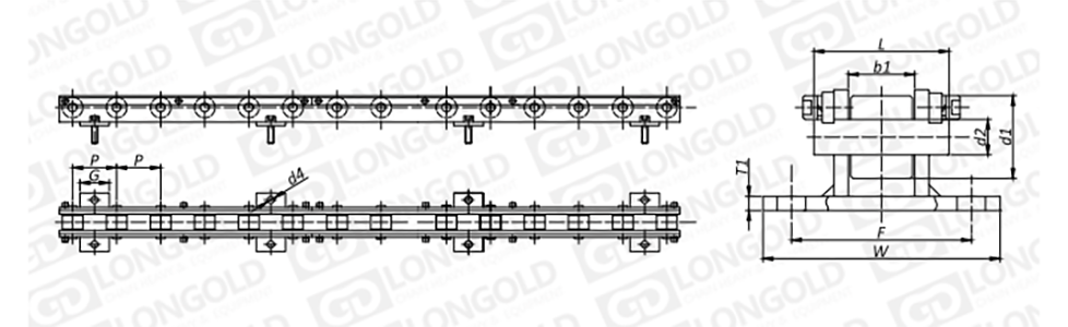 附件是為了將夾具安裝在鏈條上的零部件??筛鶕?jù)客戶要求設(shè)定安裝間隔。