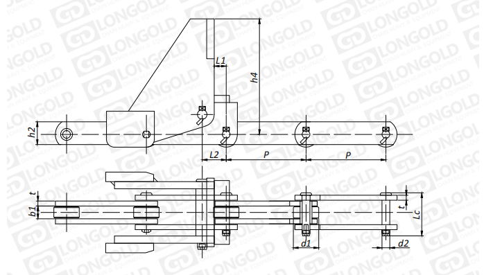 附件是為了將夾具安裝在鏈條上的零部件。可根據(jù)客戶要求設(shè)定安裝間隔。