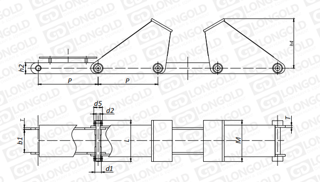 附件可配裝在每一個鏈節(jié)以上的鏈節(jié)間隔,如每偶數(shù)鏈節(jié)安裝,為了容易進行保養(yǎng),安裝在外鏈節(jié)。