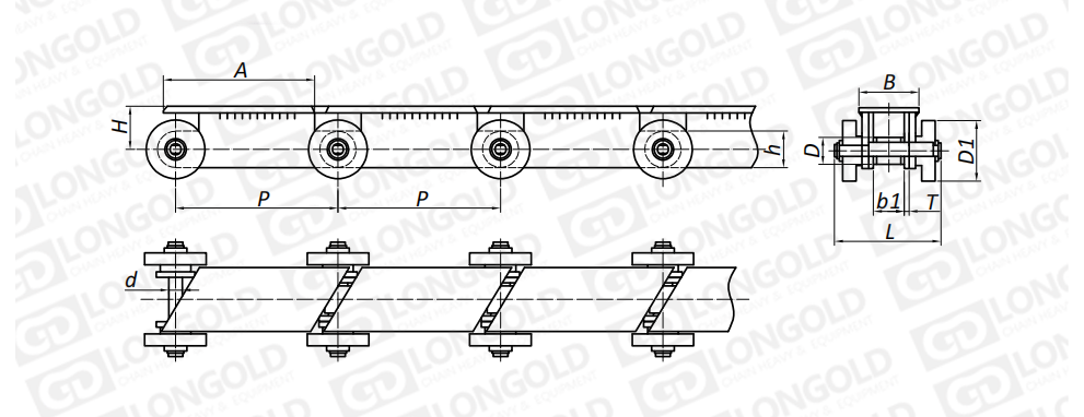 附件可配裝在每一個鏈節(jié)以上的鏈節(jié)間隔,如每偶數(shù)鏈節(jié)安裝,為了容易進行保養(yǎng),安裝在外鏈節(jié)。