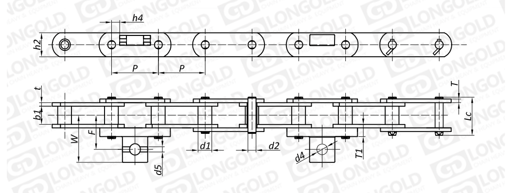 附件是為了將夾具安裝在鏈條上的零部件。可根據(jù)客戶要求設(shè)定安裝間隔。