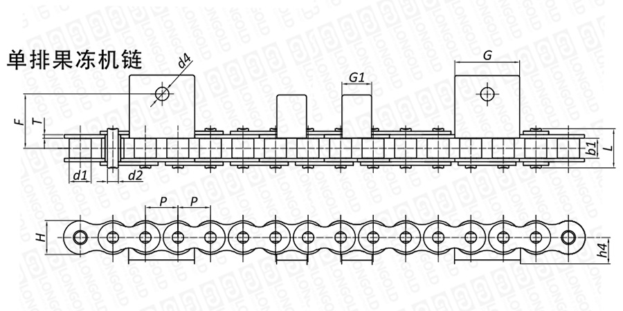 鏈條為單排,主要作為果凍生產(chǎn)裝置的驅(qū)動(dòng)鏈條來使用。