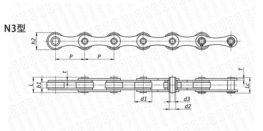 上圖為不銹鋼空心銷軸鏈N3型的結(jié)構(gòu)圖。