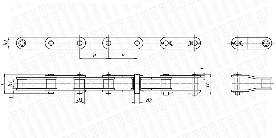 上圖為不銹鋼雙倍節(jié)距鏈直板型帶小滾子本體的結構圖。