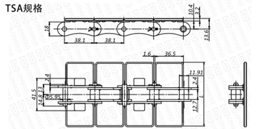 上圖為不銹鋼頂板鏈TSA規(guī)格的結(jié)構(gòu)圖。