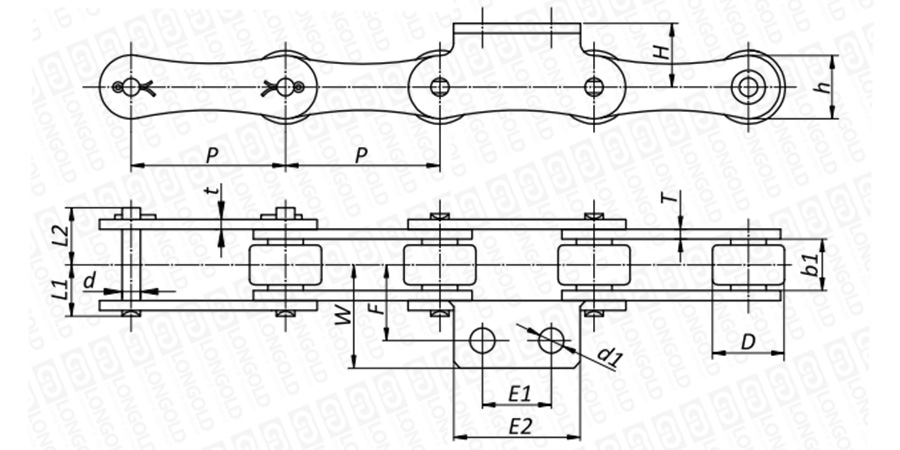 附件是為了將夾具安裝在鏈條上的零部件。可根據(jù)客戶要求設定安裝間隔。