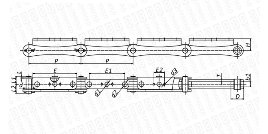 附件是為了將夾具安裝在鏈條上的零部件。可根據客戶要求設定安裝間隔。