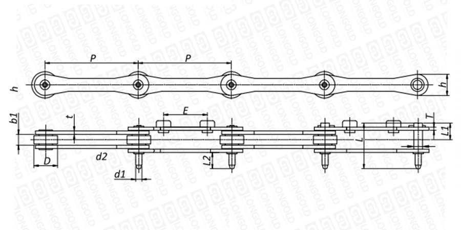 附件是為了將夾具安裝在鏈條上的零部件??筛鶕?jù)客戶要求設(shè)定安裝間隔。