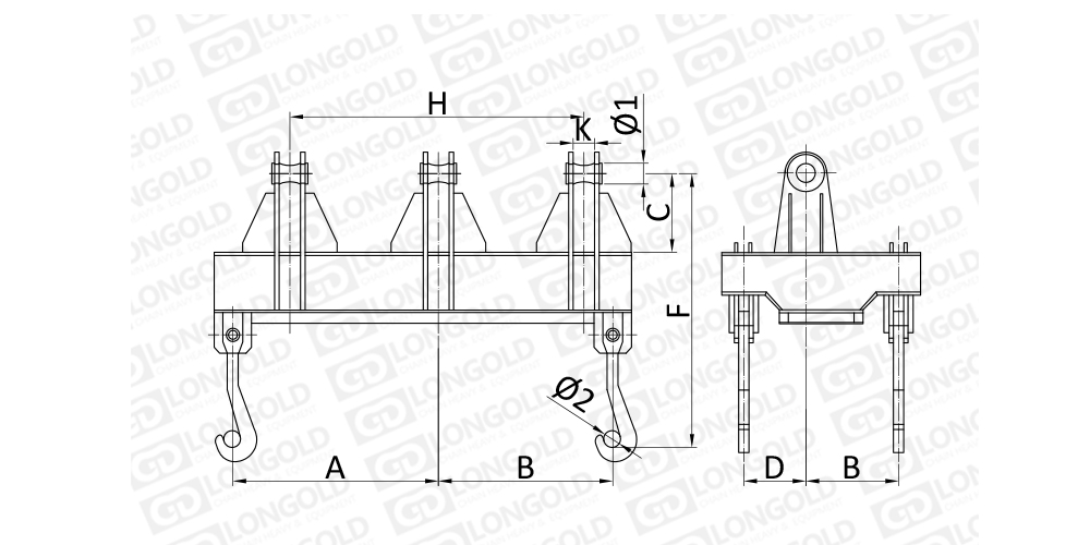 吊梁一般由橫梁、吊鉤、吊耳等部分組成。