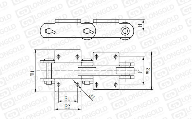 附件是為了將夾具安裝在鏈條上的零部件。可根據(jù)客戶要求設(shè)定安裝間隔。