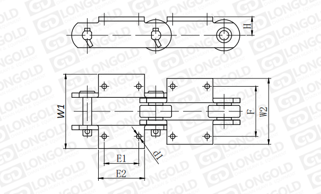 鏈板為直板型,帶K2附件,即兩側(cè)帶折彎板,折彎板上帶兩個(gè)孔。