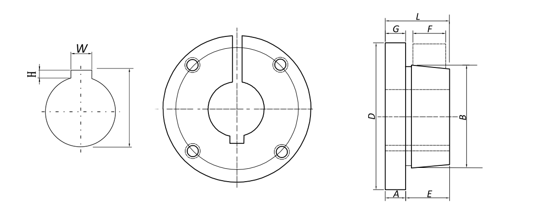 上圖為QTL系列錐套W+型錐套尺寸圖。