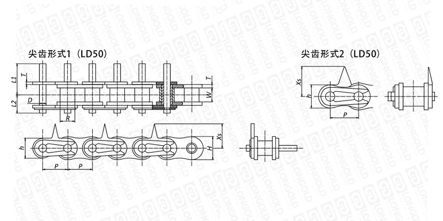 上圖為不銹鋼尖齒鏈II的結(jié)構(gòu)圖。
