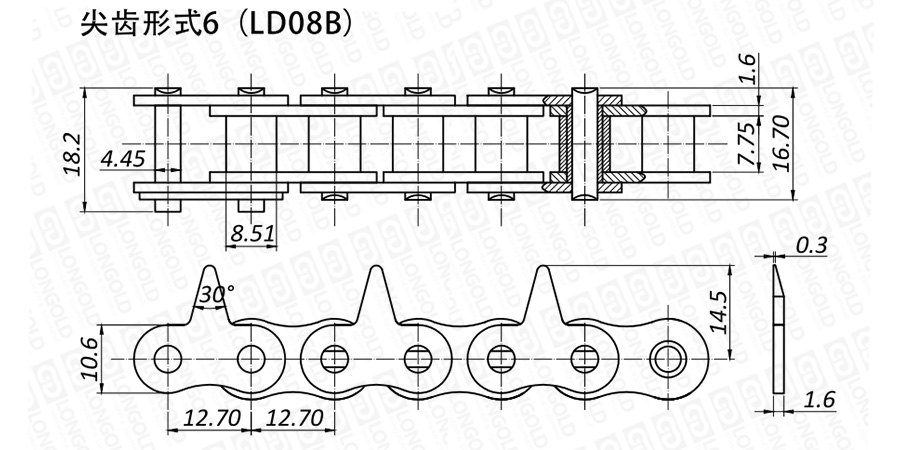 上圖為不銹鋼尖齒鏈VI的結(jié)構(gòu)圖。