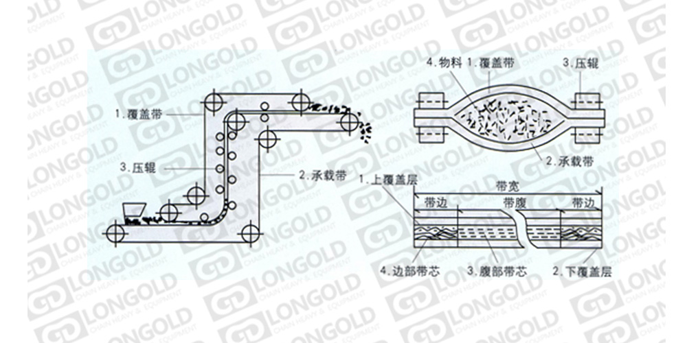 上圖為夾帶式輸送機(jī)覆蓋帶的結(jié)構(gòu)圖。