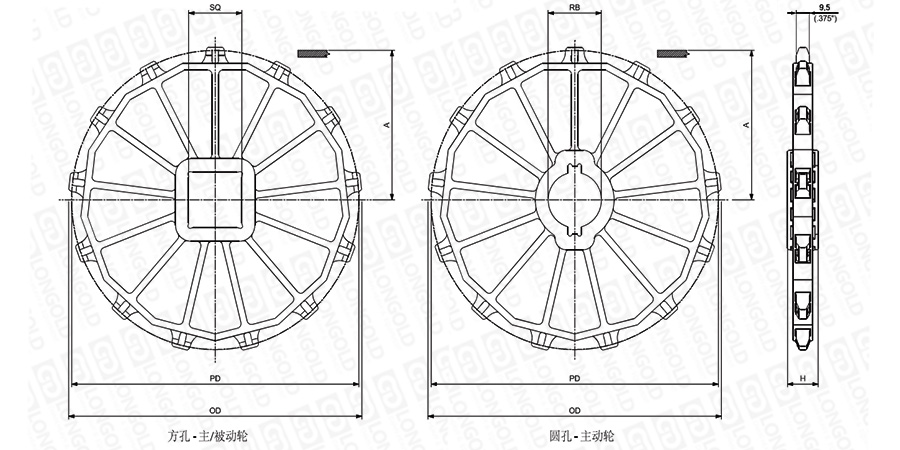 上圖為鏈輪3000系列 注塑一體式的結構圖。