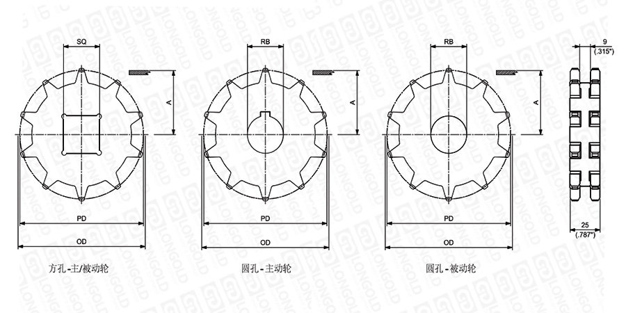 2.圓孔鏈輪孔徑表示直徑,方孔鏈輪表示邊長。