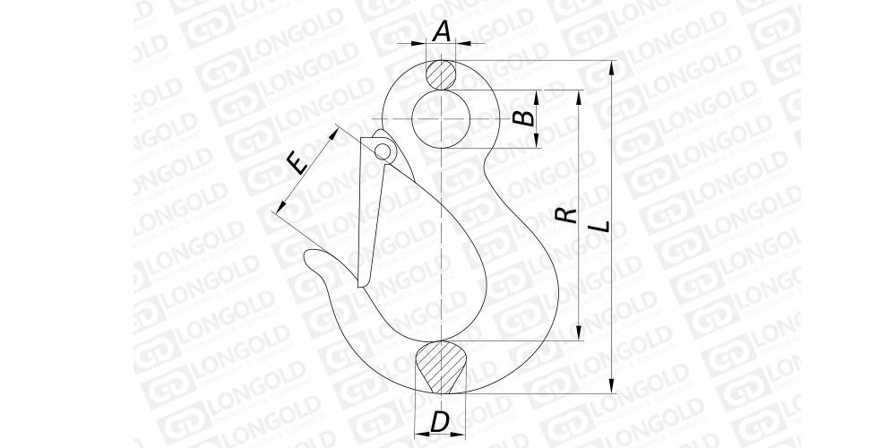上圖為寬口安全環(huán)眼吊鉤的結(jié)構(gòu)圖。
