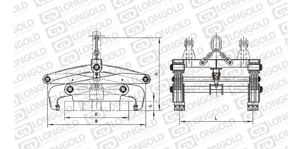 機(jī)械杠桿重力式夾鉗,采用杠桿的工作原理,依靠板(方)坯自重夾持板坯并緊鎖,開閉機(jī)構(gòu)為螺旋往復(fù)式,能自動實(shí)現(xiàn)夾鉗臂的開閉動作,可配置機(jī)械或聲光電指示裝置增加開閉動作可靠性。夾鉗不需要任何動力源,結(jié)構(gòu)簡單合理,動作靈活。可實(shí)現(xiàn)單塊、多塊板(方)坯的吊運(yùn)。