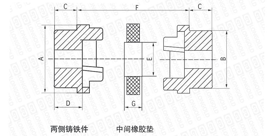 上圖為HRC彈性聯(lián)軸器直孔系列的結(jié)構(gòu)圖。