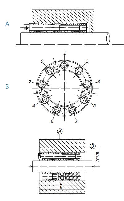 拆卸脹緊套時(shí),先將全部壓緊螺釘松開并取下,然后將拆卸螺釘擰?錐度A?相應(yīng)的拆卸螺紋孔內(nèi),