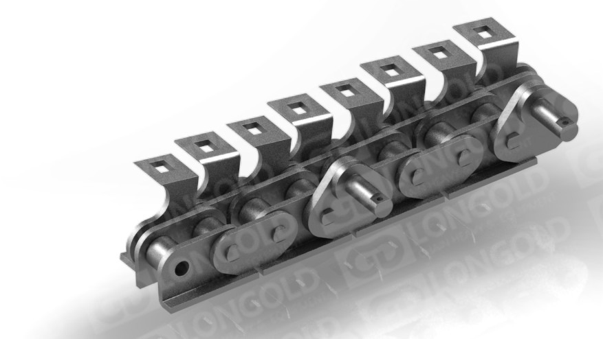 印鐵烘烤房線鏈條是一種在標(biāo)準(zhǔn)短節(jié)距精密滾子鏈基礎(chǔ)上加裝特殊附件的鏈條。為了適應(yīng)印鐵烘房的高溫環(huán)境,鏈條的材料通常選用優(yōu)質(zhì)的耐高溫合金鋼。