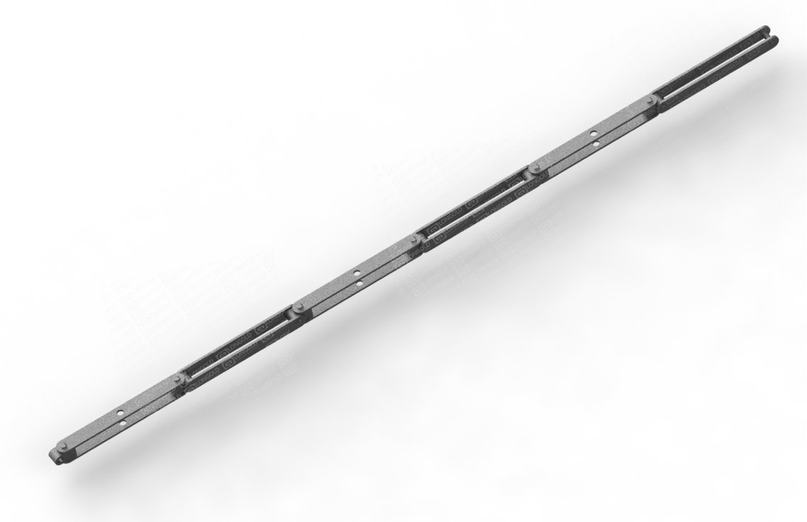 雙鉸接輸送鏈條設(shè)計(jì)用于能夠在空間范圍內(nèi)沿彎曲封閉軌道平穩(wěn)運(yùn)行的輸送系統(tǒng),常見(jiàn)于輕型封閉軌懸掛輸送機(jī)。它的結(jié)構(gòu)允許在多個(gè)方向上靈活移動(dòng),適用于復(fù)雜的輸送路線。