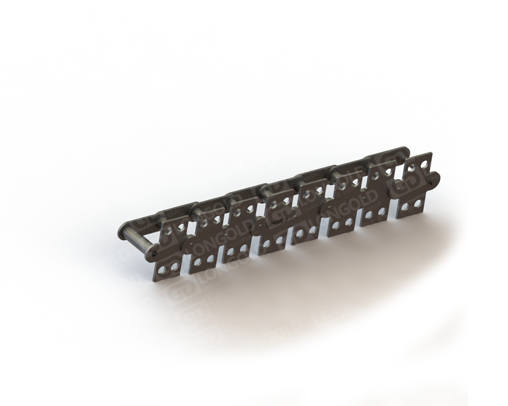 ANSI標(biāo)準(zhǔn)滾子鏈條的節(jié)距增加一倍,其他尺寸不變的鏈條。鏈條執(zhí)行ISO標(biāo)準(zhǔn),鏈條單側(cè)鏈板向上下兩側(cè)延伸,且延伸的附板上帶有1個(gè)孔。