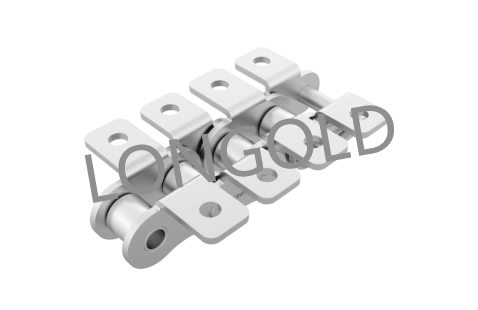 通過各種材料的組合,適合于水中、酸性及堿性等腐蝕性環(huán)境中或低溫、高溫的特殊環(huán)境里使用的帶A1附件A系列小型輸送鏈。銷軸和滾子采用熱處理硬化不銹鋼材,其他零部件都采用相當于SUS304材質(zhì)??估瓘姸葹镾S規(guī)格的1.5倍,但是耐腐蝕性略微降低。